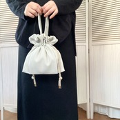 クレープアムンゼン タック巾着ミニバッグ コーラルピンク